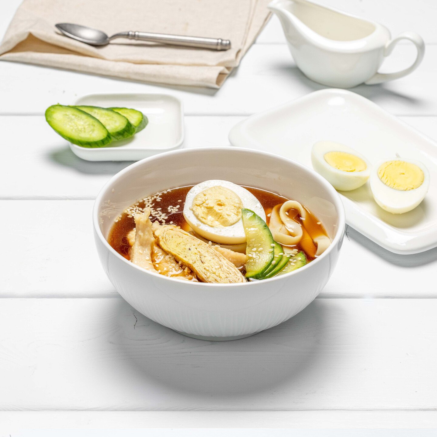 Ароматный бульон с пшеничной лапшой, нежным куриным филе и традиционным японским блином. Это блюдо соединяет в себе насыщенные вкусы и классические японские традиции.