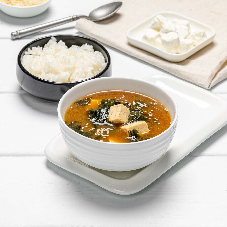 паста мисо, сыр тоффу, водоросли вакамэ, специи; рис отварной